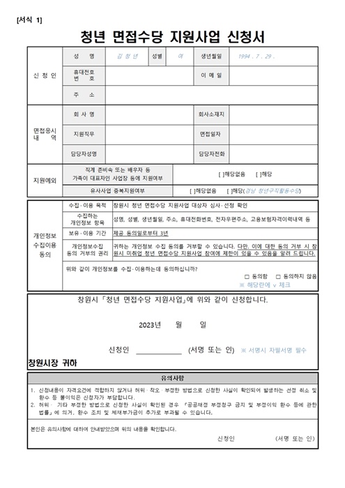 물가는 많이 오르고 취업은 어렵고 많이 힘드시지요? 창원시에서 청년들의 활발한 구직활동 지원 및 경제적 부담을 완화시키기 위한 2023년 상반기 청년 면접수당 지원사업 대상자를 선착순으로 모집하고 있습니다. 빠르게 신청 하세요.