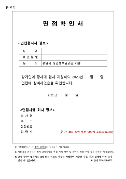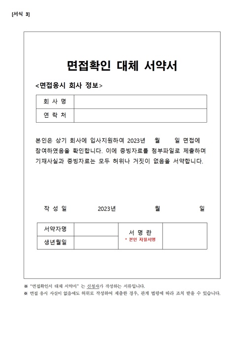 2️⃣ 면접확인서 ⇨ 서식 2 작성 또는 면접기업 자체 확인서 제출 * 면접확인서 제출 불가시, (1)+(2)+(3) 제출
